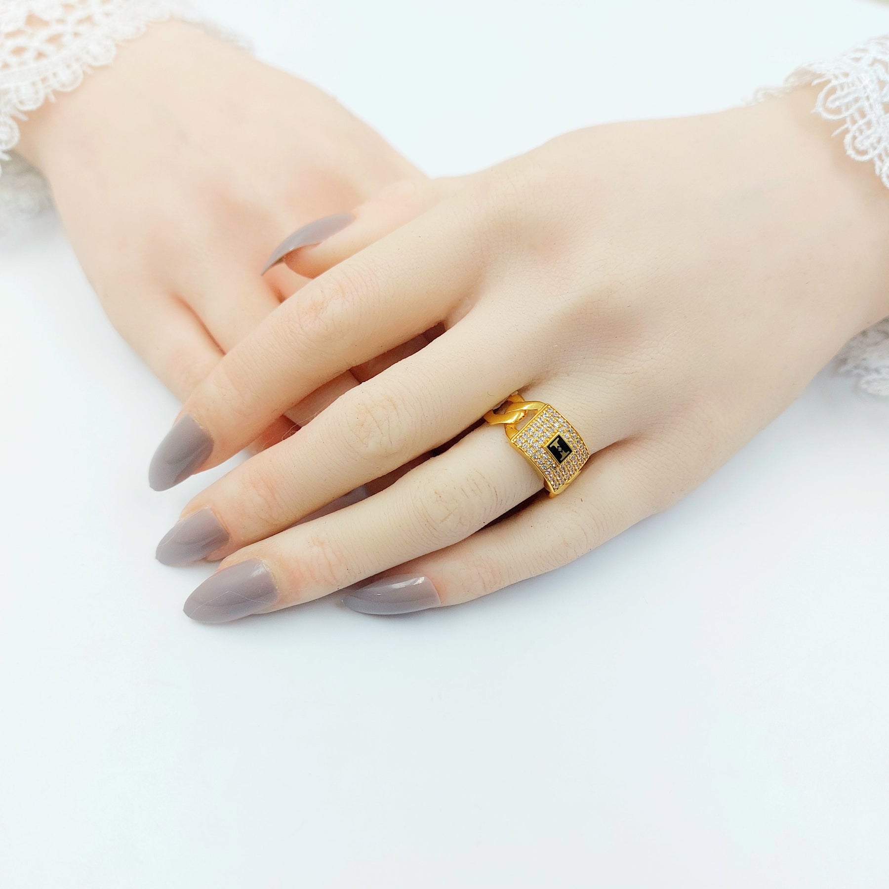 Enameled & Zircon Studded Cuban Links Ring