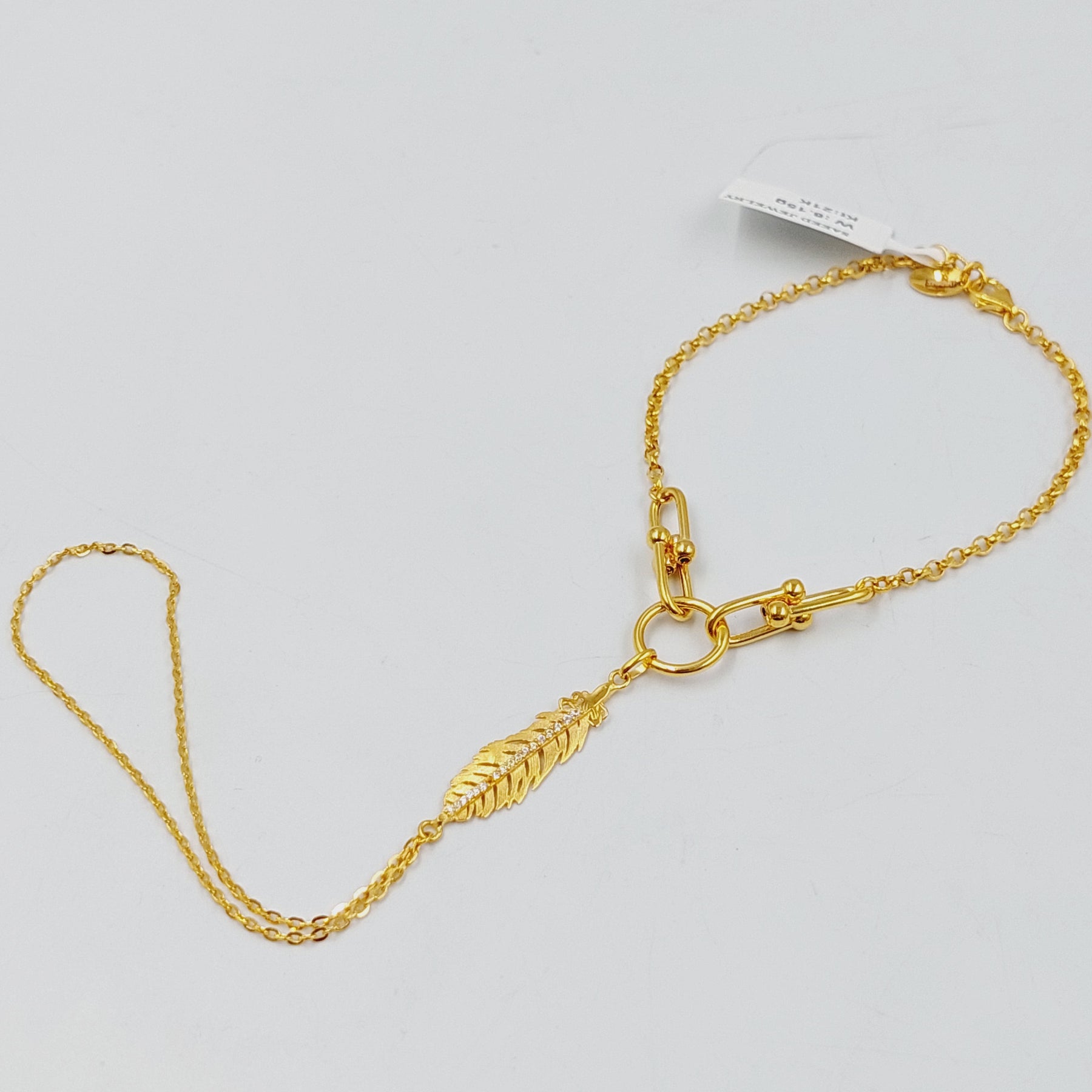 Zircon Studded Leaf Hand Bracelet Made of Pure 21K Yellow Gold
