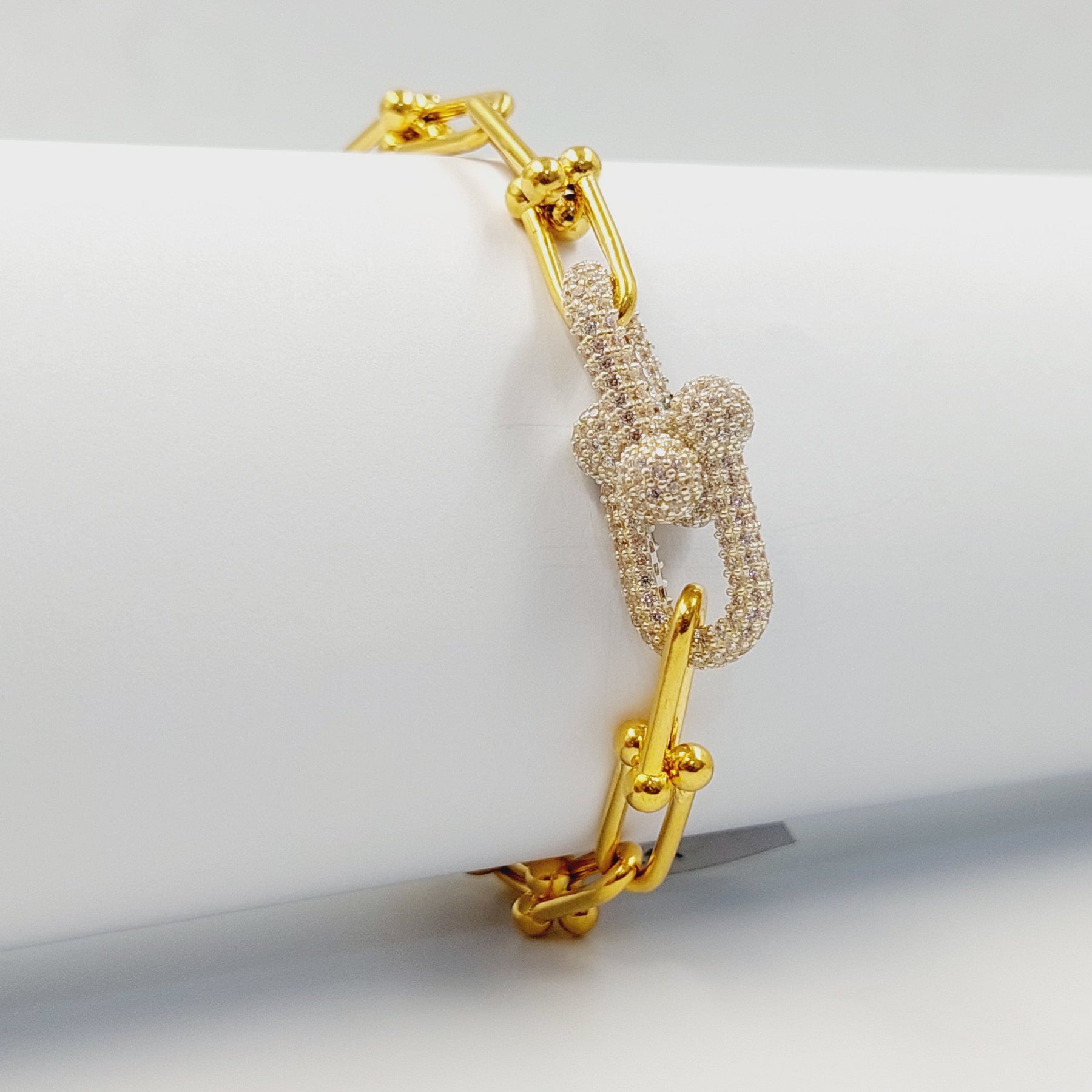 Zircon Studded Paperclip Bracelet Made of Pure 21K Yellow Gold
