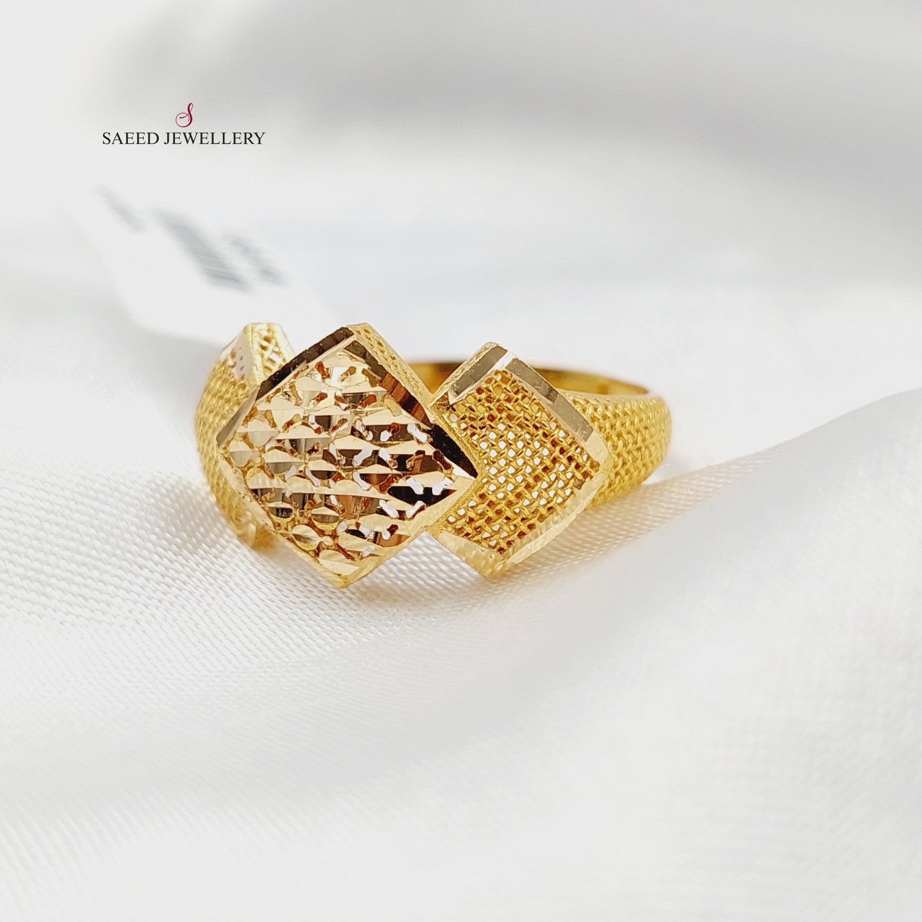 Engraved Rhombus Ring Made of Pure 21K Yellow Gold