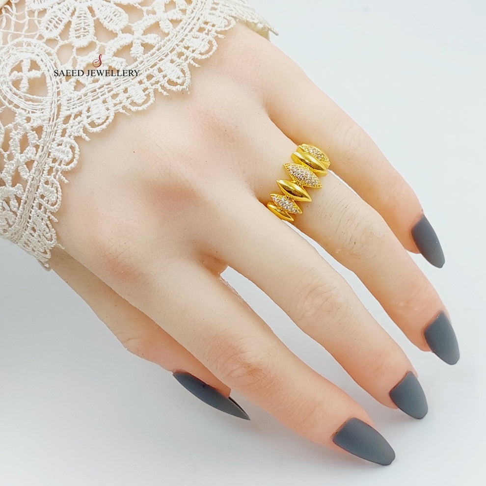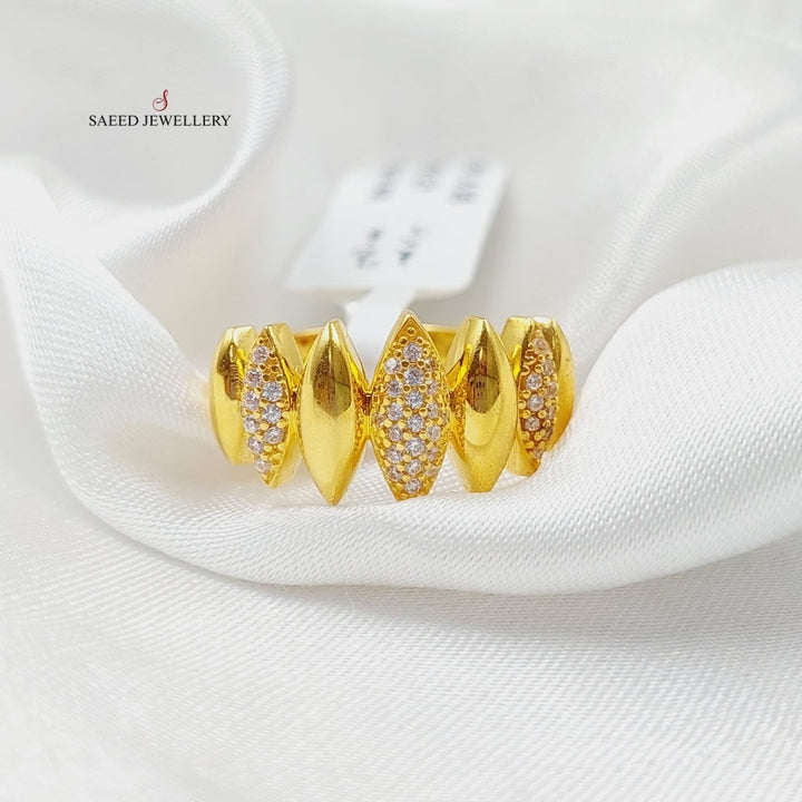 Zircon Studded Rhombus Ring Made of Pure 21K Yellow Gold