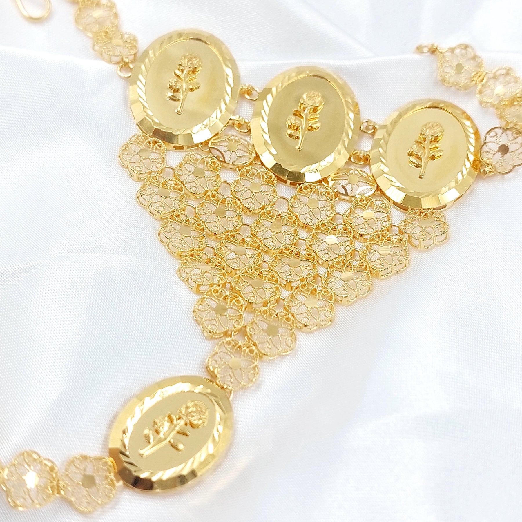 Our jewelry is crafted with high-quality gold and includes a government stamp to verify its purity. Each piece is created with the specified karat purity, such as 21K (87.5% to 88.5% pure gold). While the stamp may be subtly placed and not immediately visible, it certifies the authenticity of the gold. Please note that the value of your jewelry is based on the gold’s purity and quality, not the visibility of the stamp.