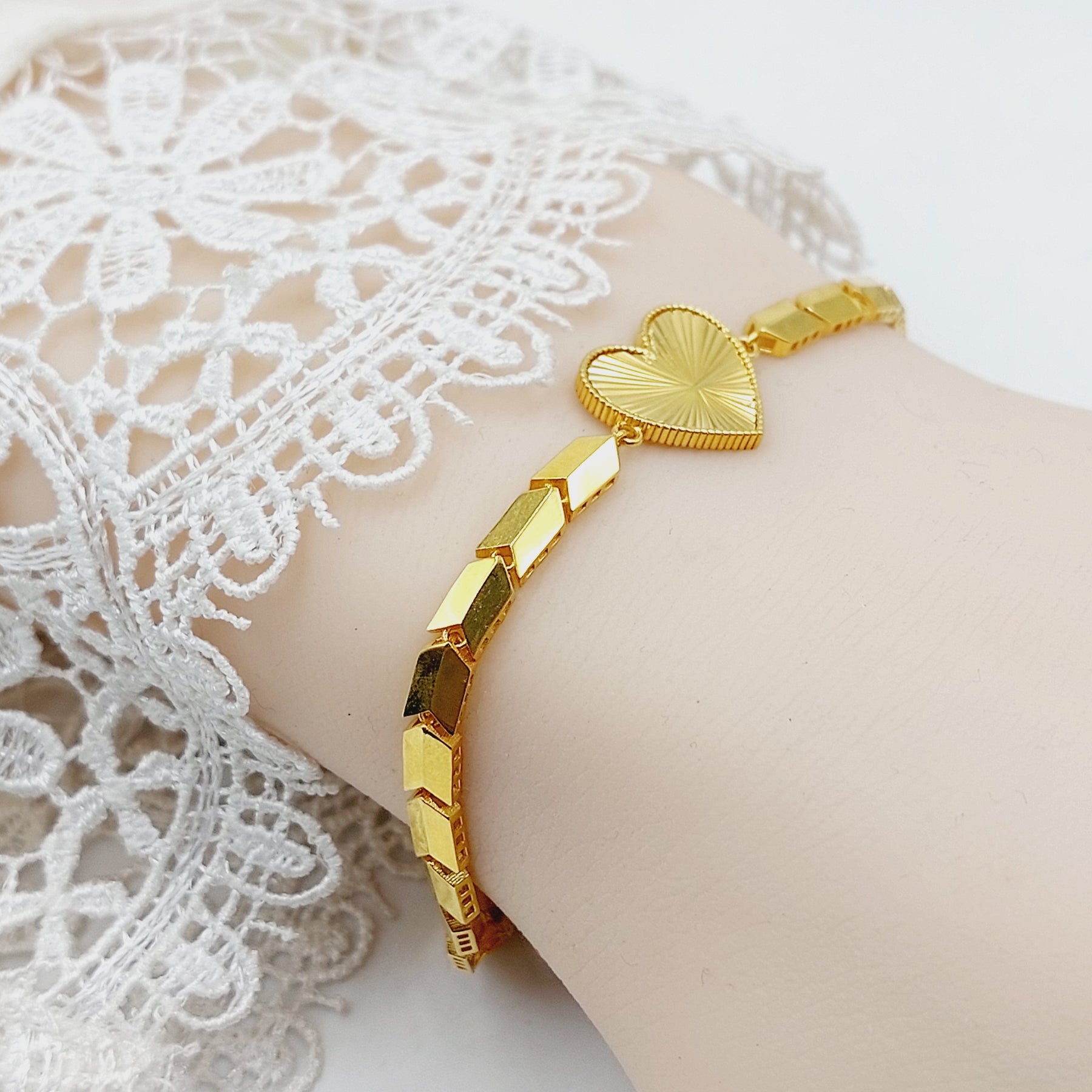 Deluxe Heart Bracelet Made of Pure 21K Yellow Gold